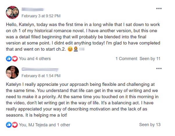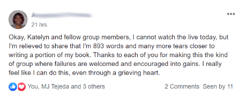 I go live every week where you can ask me any questions you might have that hold you back from writing.