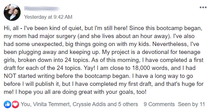 To finally finishing the book you’ve always dreamed about in just 90 days.
